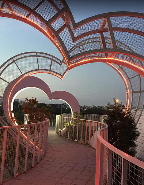 我們取名作:圓緣愛心橋,祈願在晴空下來到這裡留下身影,成雙成對的情侶夫妻,都恩愛長久、緣份圓滿~是月桃館深受伴侶們喜愛的景點
